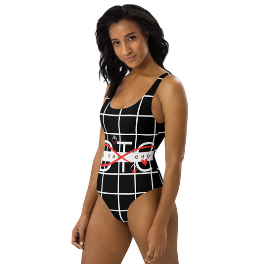 Black Grid One-Piece Swimsuit